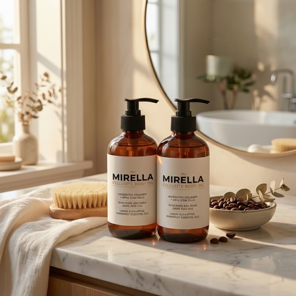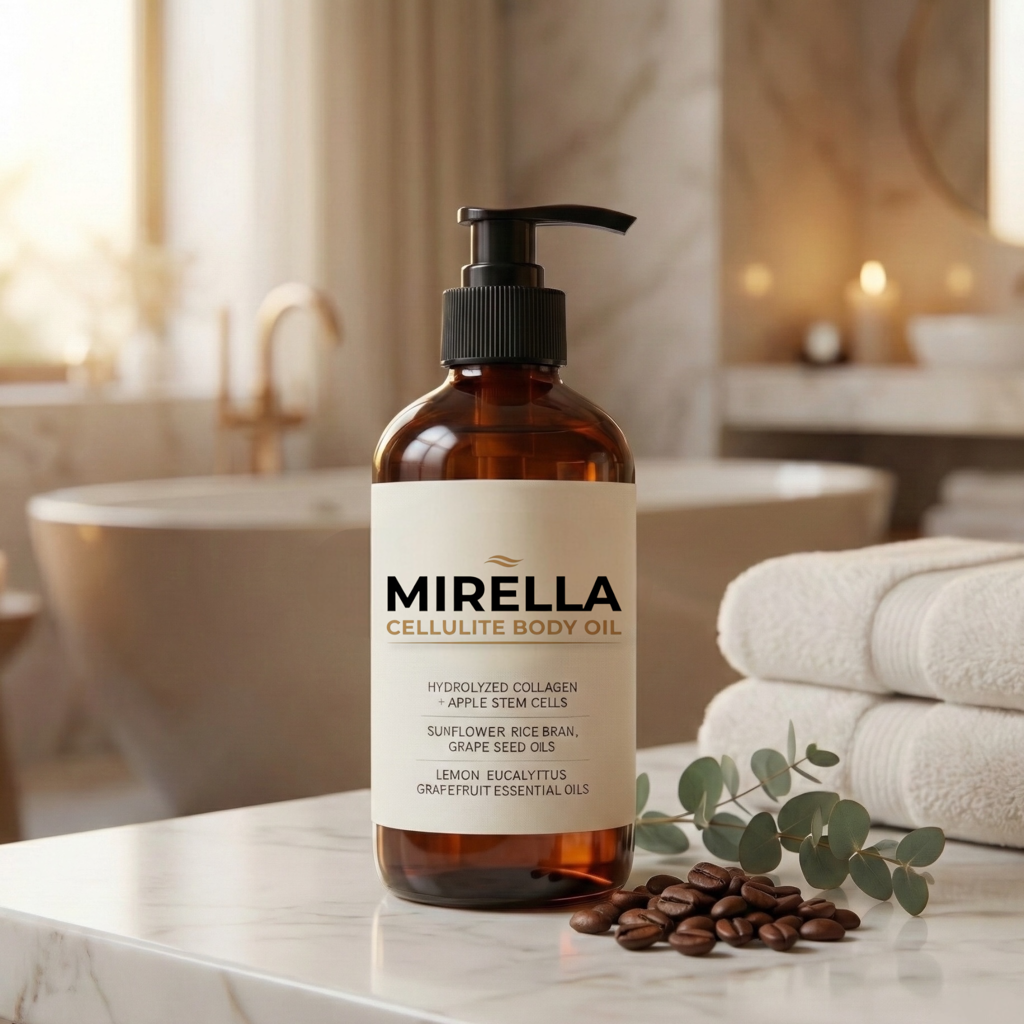 Meet MIRELLA, your new daily ritual for smoother, firmer, and more radiant skin. Our premium cellulite body oil is specifically formulated to penetrate deeply, targeting uneven texture while providing intense hydration that lasts all day.